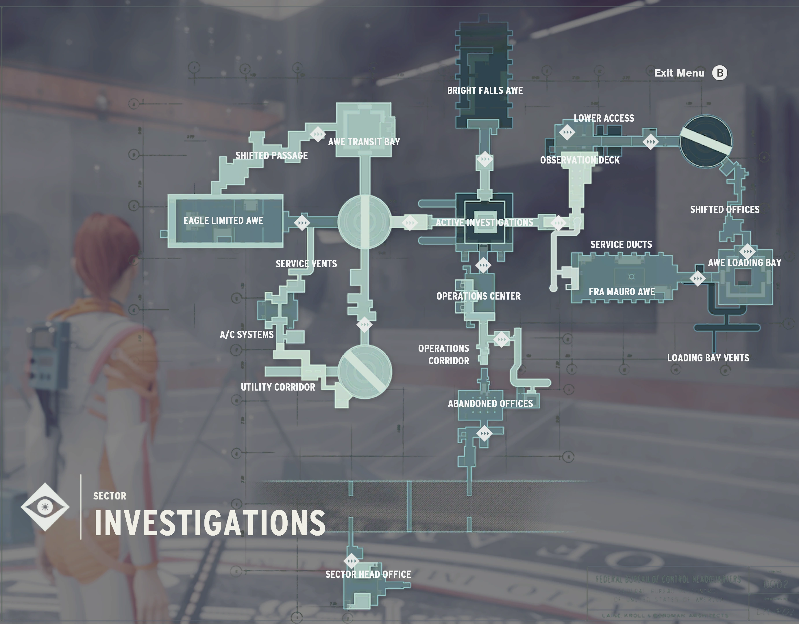 The Investigations Sector was once the domain of the Federal Bureau of Control's Investigations Department, which conducted investigations of paranatural phenomena (such as Altered World Events and paracriminals), and had oversight authority over all members of the FBC itself including the Director. The Head of Investigations was William Kirklund.